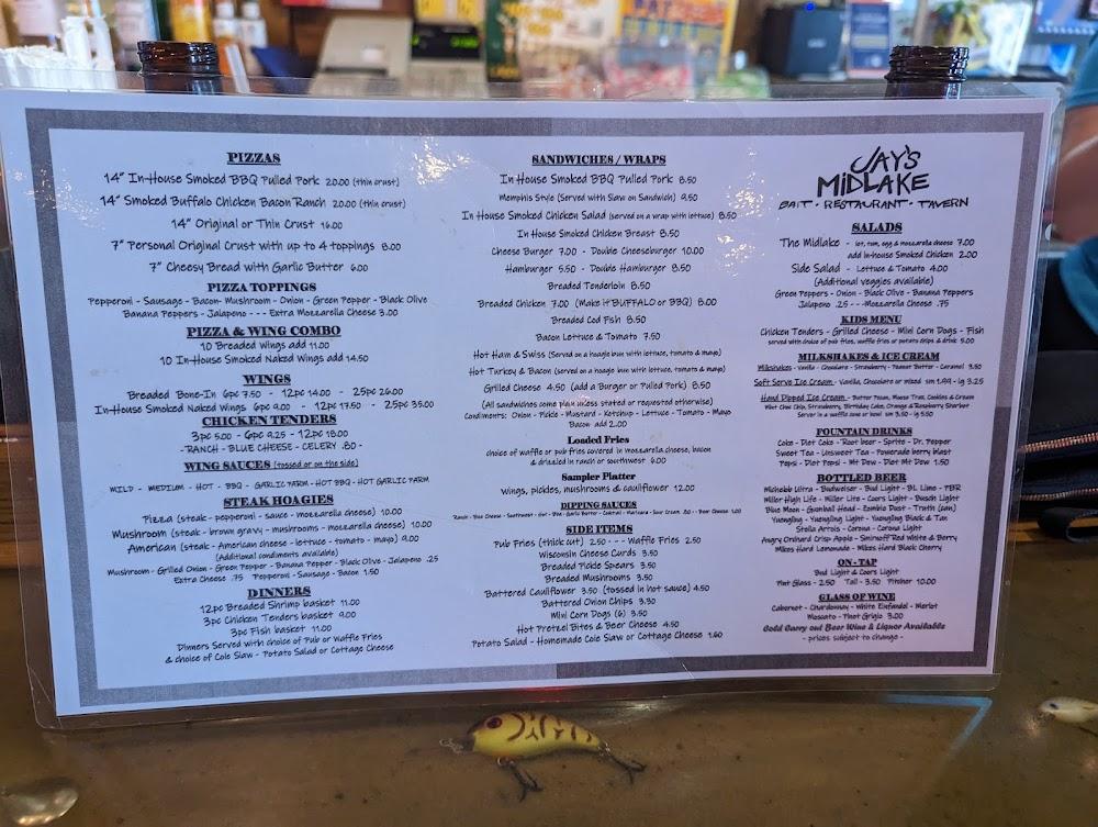 Welcome to Jays Midlake Bait.Tackle.Restaurant, your friendly neighborhood stop on the way to Brookville Lake! As a family-run establishment, we take pride in serving delicious, locally-inspired dishes like our year-round Pulled Pork and seasonal Smoked Chicken Salad, crafted from our own recipe and smoked right here. Whether you're looking to fuel up before your fishing adventure or simply enjoy the cozy atmosphere, we’re excited to welcome you. With a great selection of beers, cocktails, and quick service, we're the perfect spot for lunch, dinner, or a relaxing solo meal. Come and taste the love!